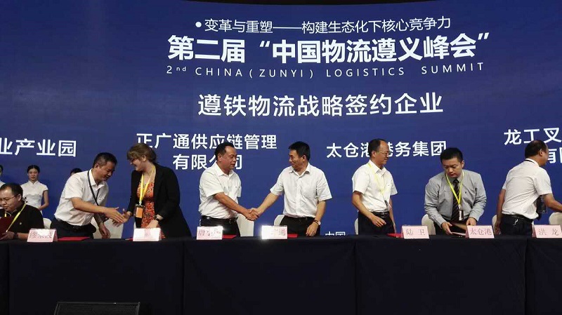 会上,在中国物流与采购联合会、贵州省商务厅、贵州省遵义市人民政府各级领导的见证下,正广通集团与遵铁物流签订战略合作协议。