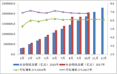 1-10月,全国社会物流总额为206.3万亿元,按可比价格计算,同比增长6.8%,增速比前三季度回落0.1个百分点。