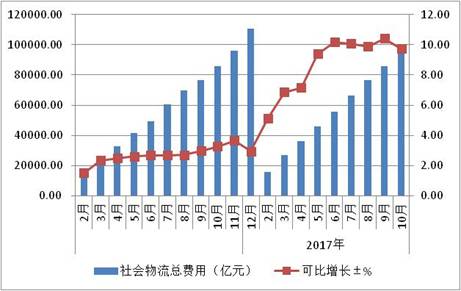 1-10月,社会物流总费用9.5万亿元,同比增长9.7%,增速比前三季度回落0.7个百分点。