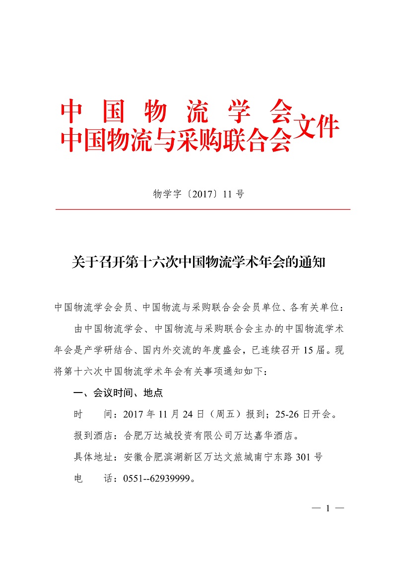 关于召开江西省物流与采购联合会2017工作年会暨江西省物流标准化技术委员会成立大会的通知