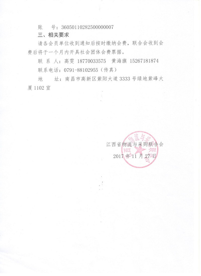 关于召开江西省物流与采购联合会2017工作年会暨江西省物流标准化技术委员会成立大会的通知
