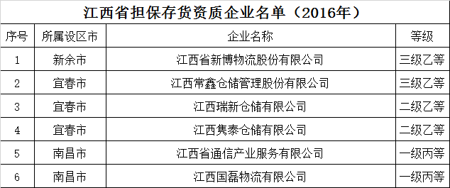 江西省担保存货资质企业名单