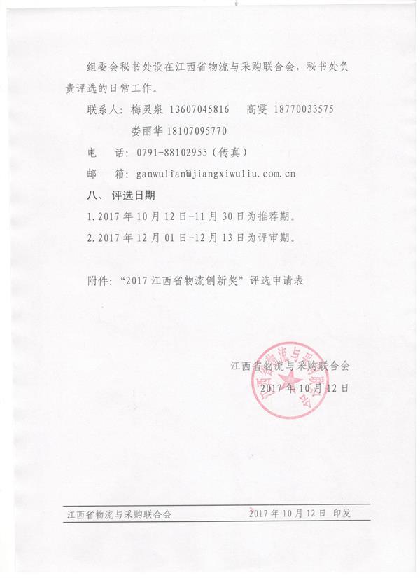 注:请提交申报资料的企业,申请表盖章扫描后,电子版1份发邮箱:ganwulian@www.ncshang.com,纸质版3份邮寄协会。邮寄地址:江西省南昌市高新区紫阳大道3333号绿地紫峰大厦1102室,联系人:梅灵泉,13607045816。
