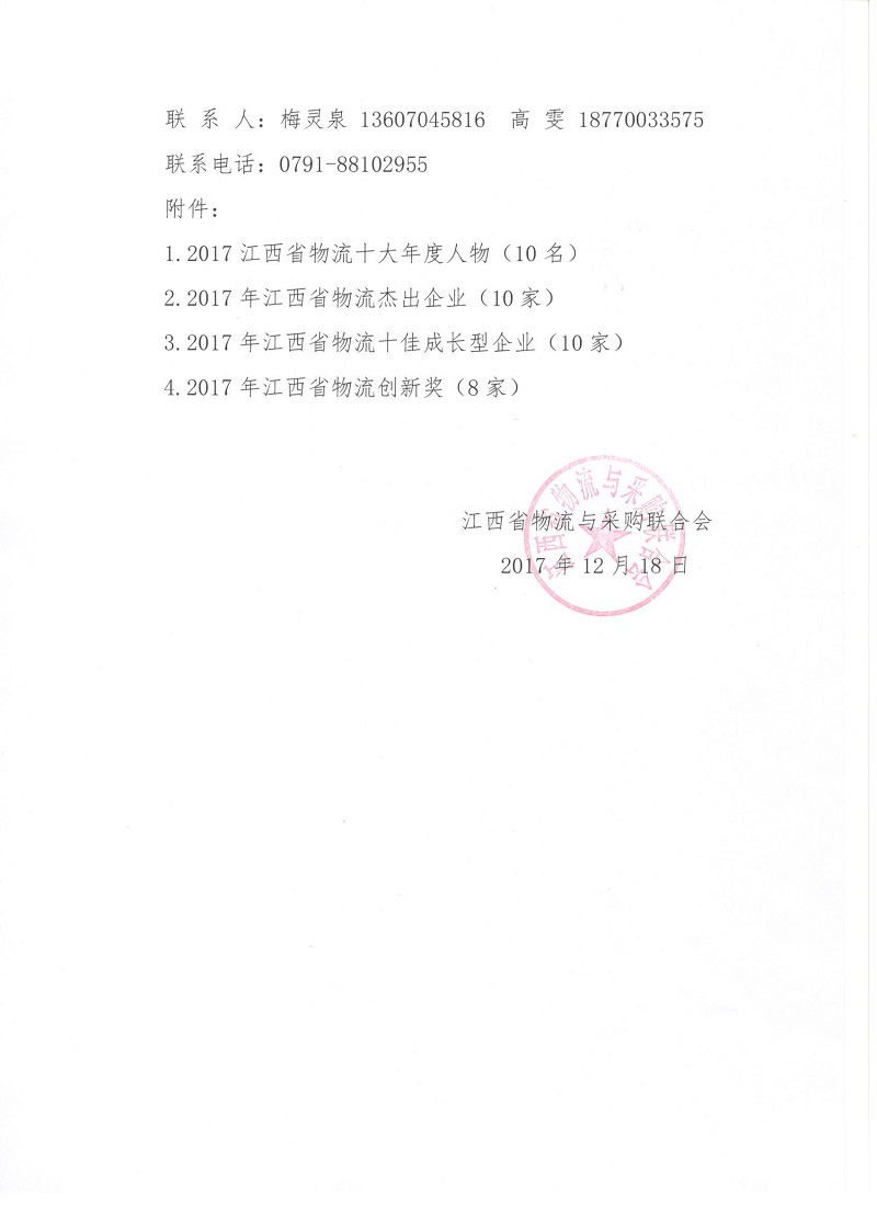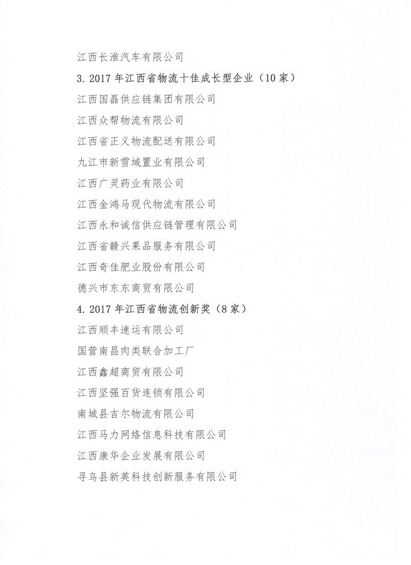 2017年江西省物流行业评选拟入选单位公示